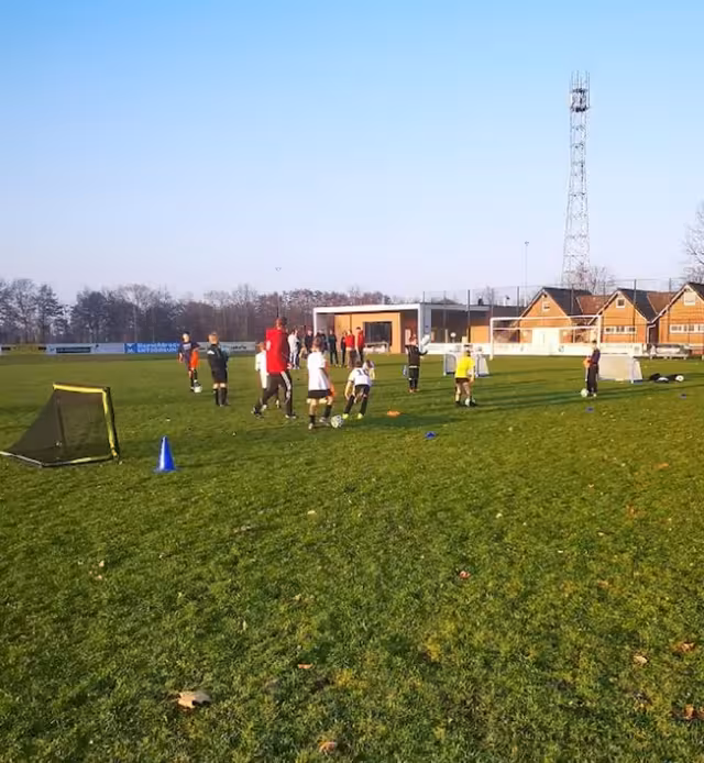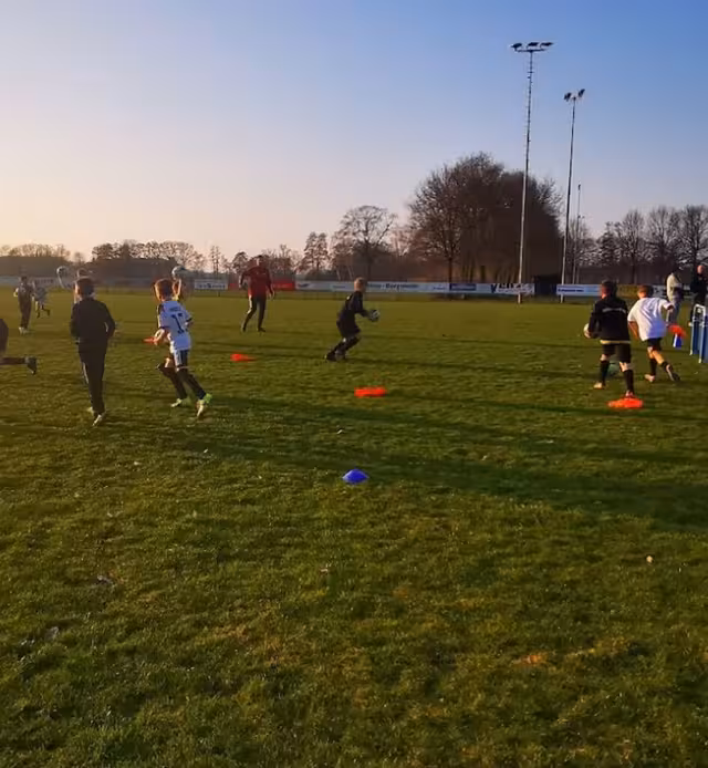 Als Trainingsgruppe dient an diesem Abend die E-Jugend. Während am Rand die Trainer der verschiedenen Altersklassen zuschauen, lernen und coachen, wird auf dem Platz gedribbelt, gepasst und gespielt. Keine endlosen Laufwege, keine komplizierten Taktiktafeln – stattdessen viele Ballkontakte, kleine Spielformen und Übungen, die sofort zeigen: So macht Training Spaß.